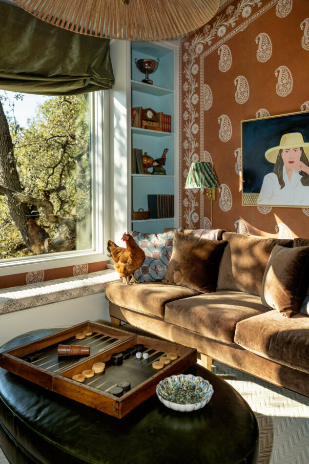Obviously, we matched our boldest hen to the boldest room. Loud patterns and layered prints? Right up her alley. This confident queen strutted straight in like she owned the place – and honestly, she kind of did.